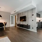 A mini-kitchen is equipped with coffee and tea makers, as well as a refrigerator, an oven, and a cooktop for self-catering purposes. To further enhance their stay at this apartment, guests are invited to take part in fitness classes.